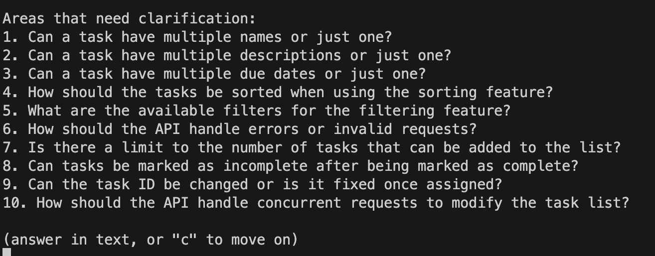 Once GPT Engineer reads your prompt, it seeks clarifications to ensure it has grasped the requirements.